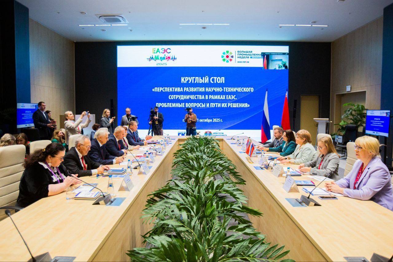 1 октября 2025 года в рамках деловой программы Международной промышленной выставки «ИННОПРОМ. Беларусь» состоялся Круглый стол на тему «Перспектива развития научно-технического сотрудничества в рамках ЕАЭС. Проблемные вопросы и пути их решения» с участием заместителя Председателя Государственного комитета по науке и технологиям Республики Беларусь Татьяны Столяровой.