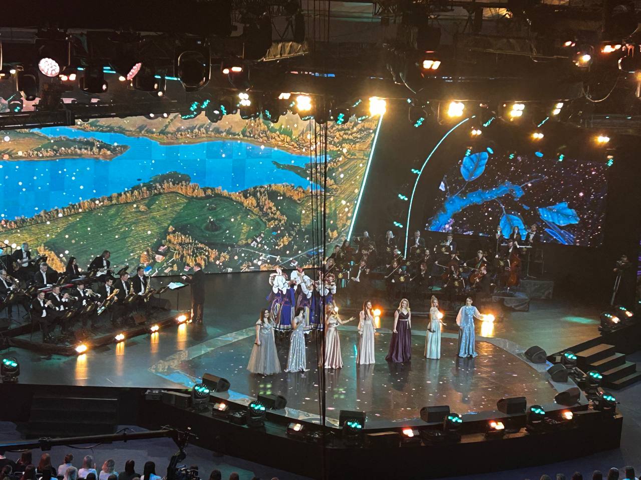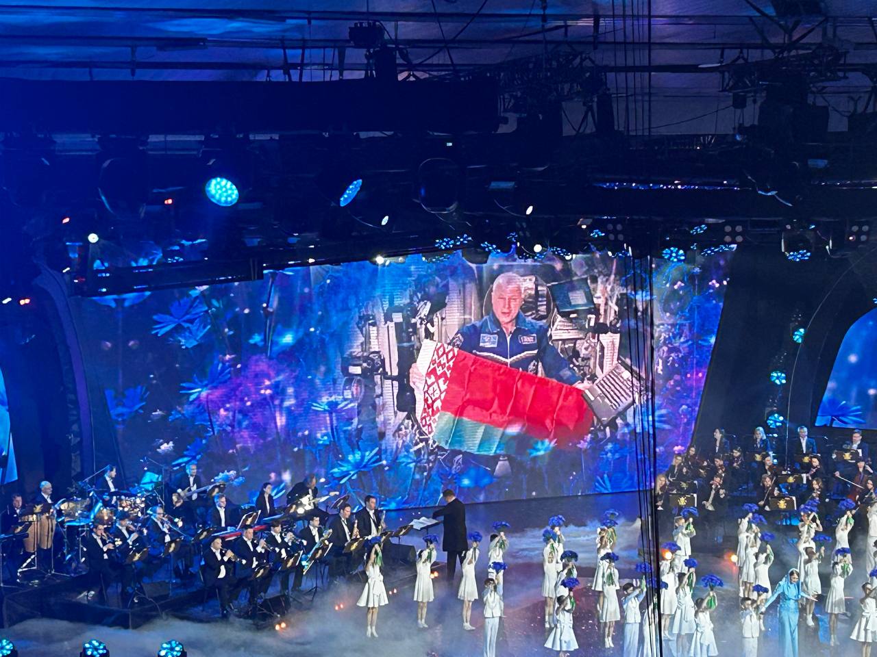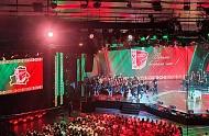 После первого заседания VII Всебелорусского народного собрания в столичном Дворце спорта состоялся гала-концерт мастеров искусств Беларуси. Концертную программу сопровождал Президентский оркестр Республики Беларусь под управлением главного дирижера Виталия Кульбакова.