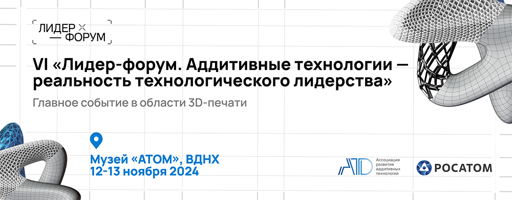 12-13 ноября 2024 года в Москве проходит VI «Лидер-форум. Аддитивные технологии – реальность технологического лидерства» — ключевое мероприятие в области 3D-печати в России. Масштабное мероприятие представляет собой не только эффективную дискуссионную площадку, но и выставку последних достижений в сфере 3D-печати, которая в нынешнем году проходит в формате арт-галереи. Организаторы форума – Ассоциация развития аддитивных технологий и госкорпорация «Росатом» при поддержке Корпорации развития Зеленограда.