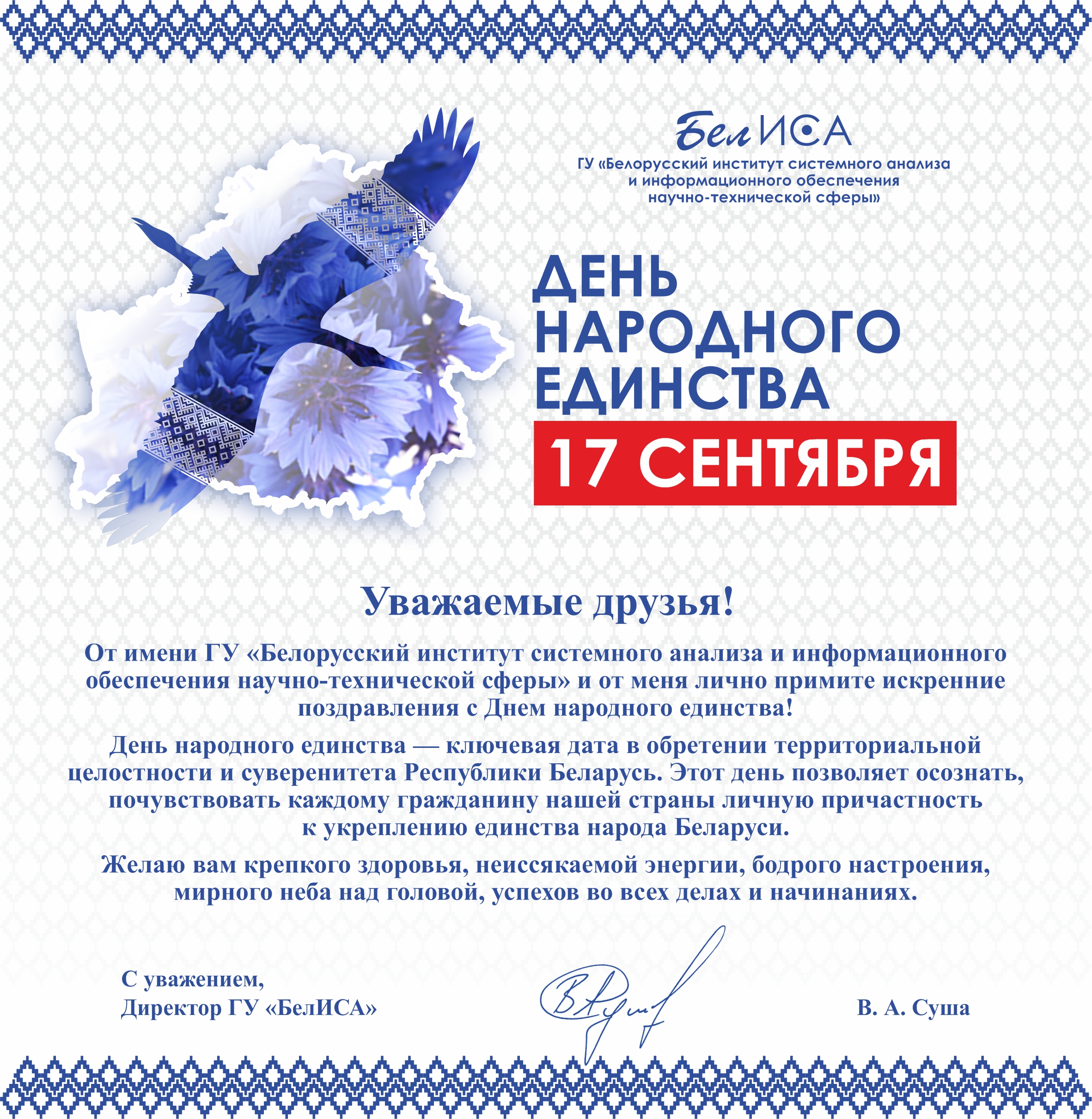 Поздравление директора ГУ «БелИСА» с Днем народного единства