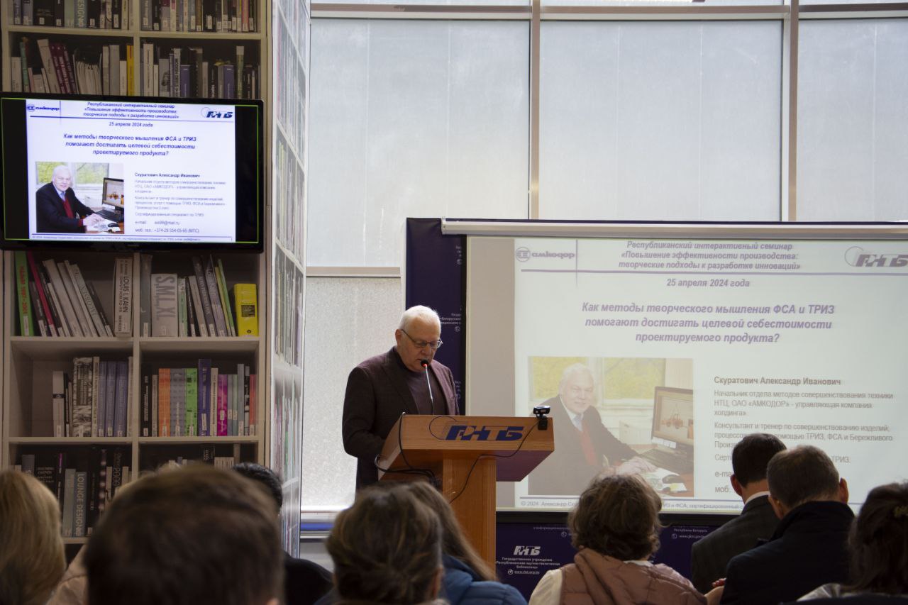 В рамках Года качества и в преддверии Международного дня интеллектуальной собственности Государственный комитет по науке и технологиям Республики Беларусь, Республиканская научно-техническая библиотека и научно-практический журнал «Наука и инновации» НАН Беларуси провели Республиканский интерактивный семинар «Повышение эффективности производства: творческие подходы к разработке инноваций» для специалистов инженерно-конструкторских служб, дизайнеров, менеджеров, маркетологов, служб по управлению интеллектуальной собственностью предприятий и организаций, специалистов малых и средних предприятий.