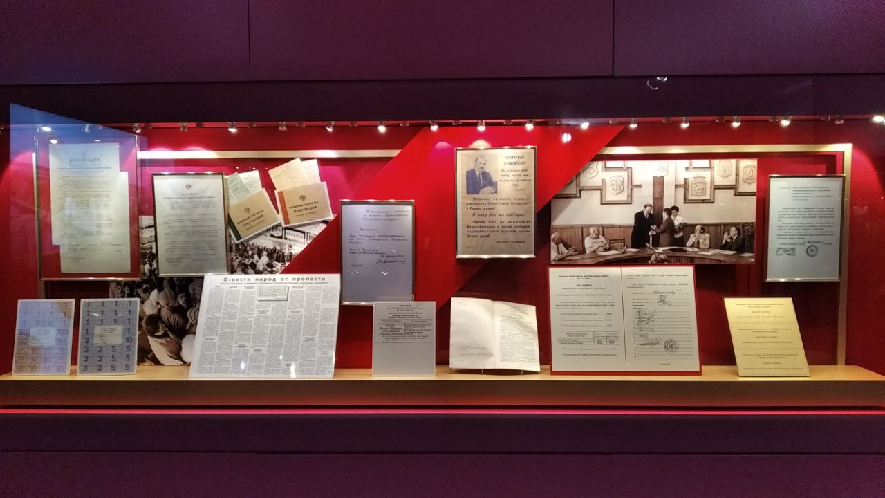 Первый зал основной экспозиции посвящён государственному устройству Республики Беларусь. В его стенах можно познакомиться с документами и видеоматериалами периода становления современной белорусской государственности, а также с президентскими и государственными символами, банкнотами и монетами Национального банка Республики Беларусь, государственными наградами.