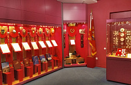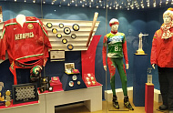 В третьем зале рассказывается про развитие культуры и спорта в стране. Здесь представлены награды деятелей культуры и искусств, макеты культурных и спортивных объектов, олимпийские награды белорусских спортсменов.
