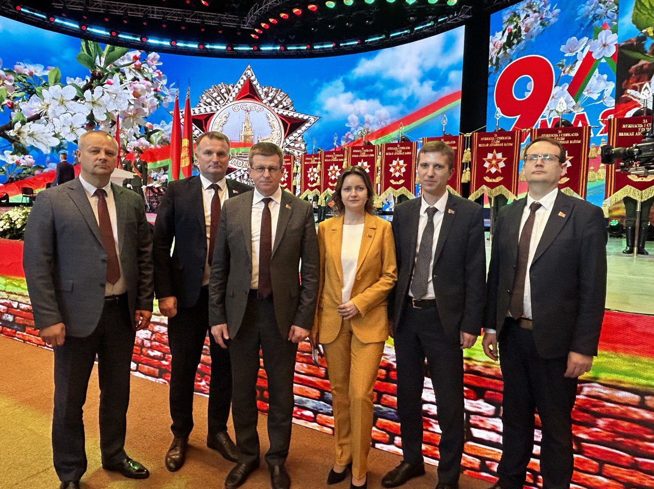 Отдавая дань уважения боевому и трудовому подвигу соотечественников в годы войны, Глава государства наградил вымпелом «3а мужнасць і стойкасць у гады Вялiкай Айчыннай вайны» девять белорусских населенных пунктов, наиболее самоотверженно проявивших себя в борьбе с врагом: Барановичи, Дзержинск, Дятлово, Калинковичи, Любань, Осиповичи, Чаусы, Оболь и Освею. Президент вручил соответствующие почетные грамоты представителям руководства этих населенных пунктов. Президент отметил, что награждения вымпелом достойны все города и села страны. И поэтому отобрать лучших, особенных было очень сложно. «Ведь в каждом населенном пункте, на каждом клочке белорусской земли фашисты сталкивались с ожесточенным сопротивлением. Везде земля просто пылала под сапогом оккупантов», – сказал Глава государства.