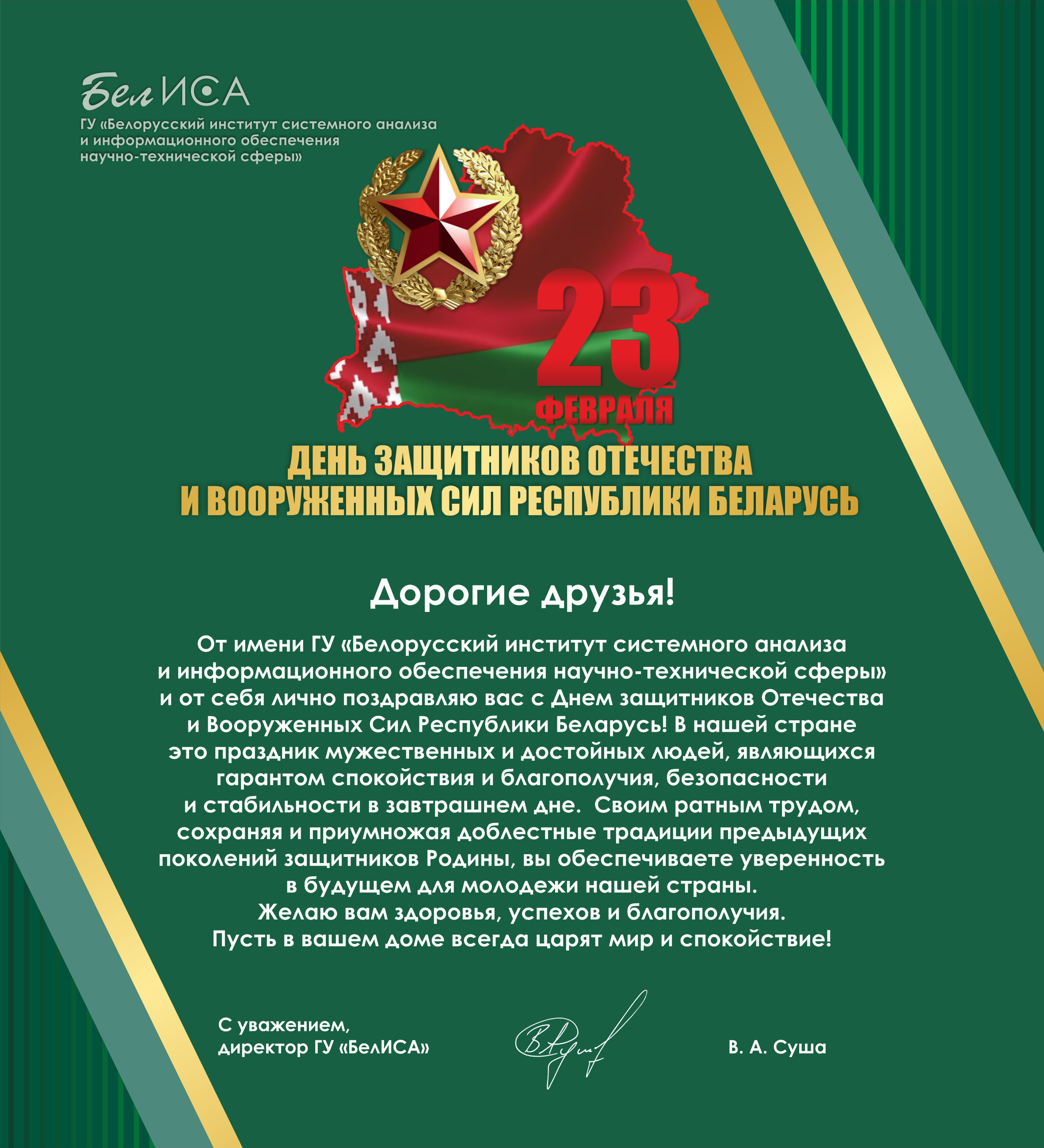 Поздравление директора ГУ «БелИСА» с Днем защитников Отечества и Вооруженных Сил Республики Беларусь