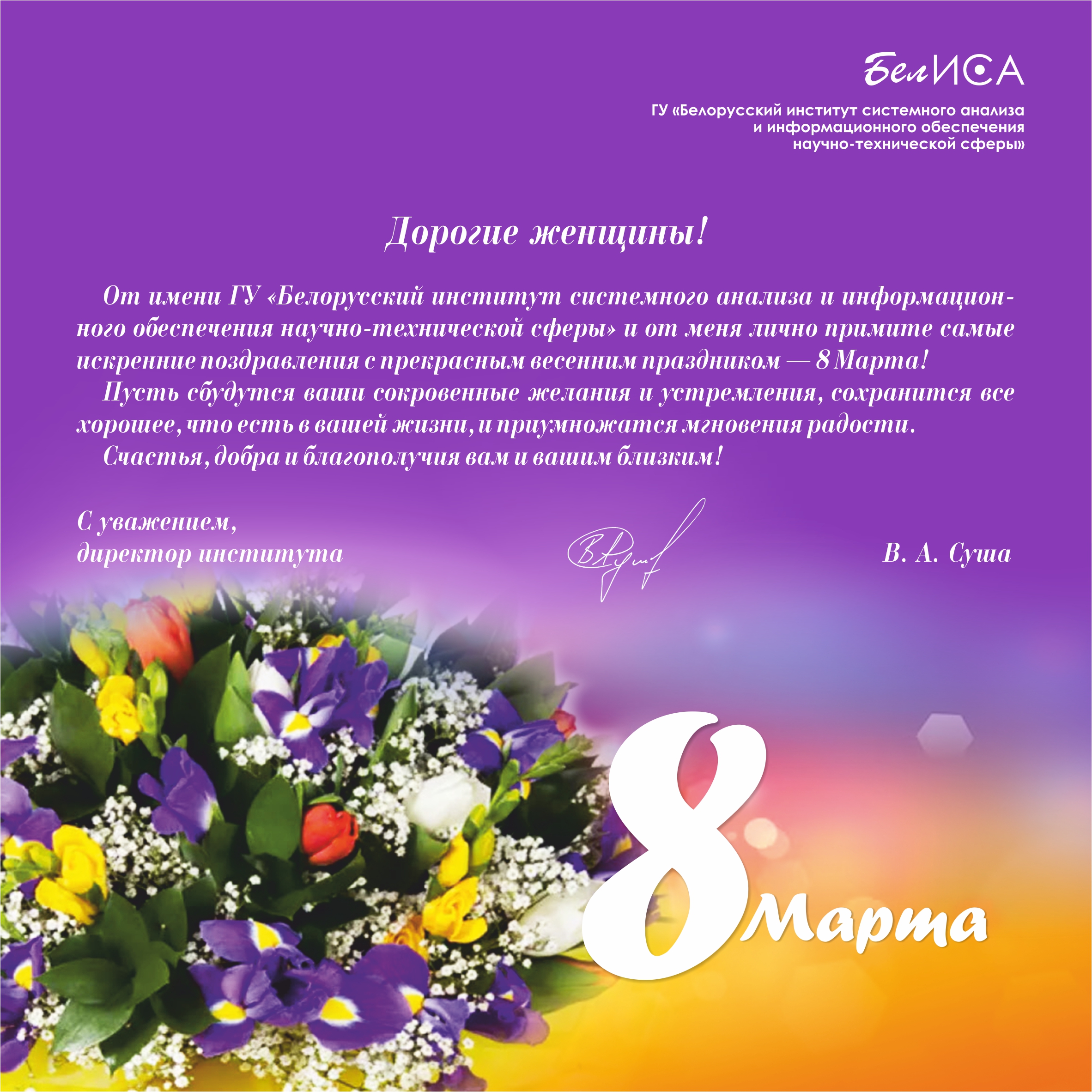Поздравление директора ГУ «БелИСА» с Международным женским днем