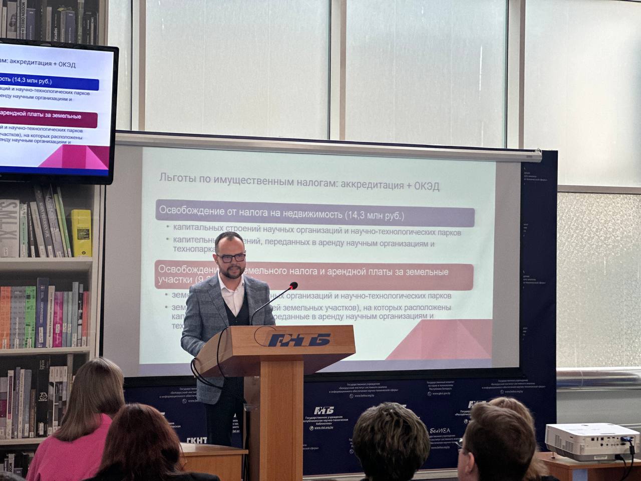 В рамках мероприятия также рассмотрены существующие льготы и преференции, предусмотренные законодательством Республики Беларусь для субъектов научно-технической деятельности. Особое внимание уделено освобождению от налога на добавленную стоимость оборотов по реализации на территории Республики Беларусь научно-исследовательских, опытно-конструкторских и опытно-технологических работ, зарегистрированных в государственном реестре научно-исследовательских, опытно-конструкторских, опытно-технологических работ, а также льготе по налогу на прибыль.