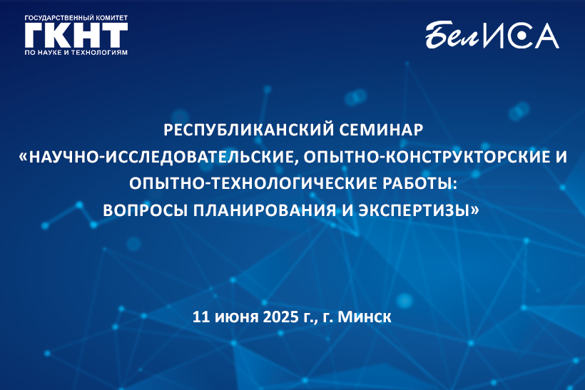 C целью повышения качества подготовки заданий научно-технических программ, проектов научно-технических программ на 2026-2030 годы, поступающих на государственную научно-техническую экспертизу ГУ «БелИСА» проводит 11 июня 2025 г. в г. Минске в очном формате республиканский семинар «Научно-исследовательские, опытно-конструкторские и опытно-технологические работы: вопросы планирования и экспертизы».