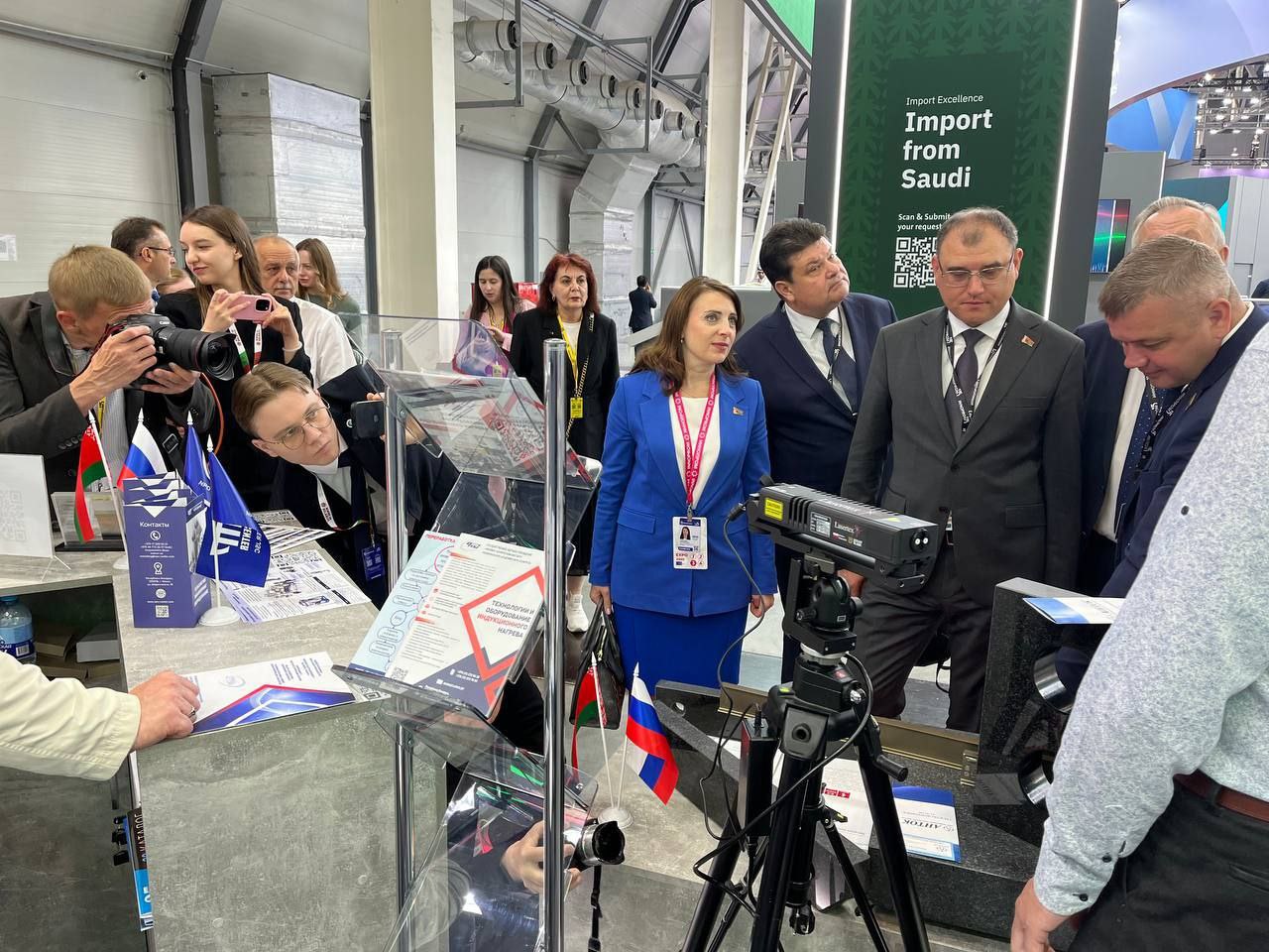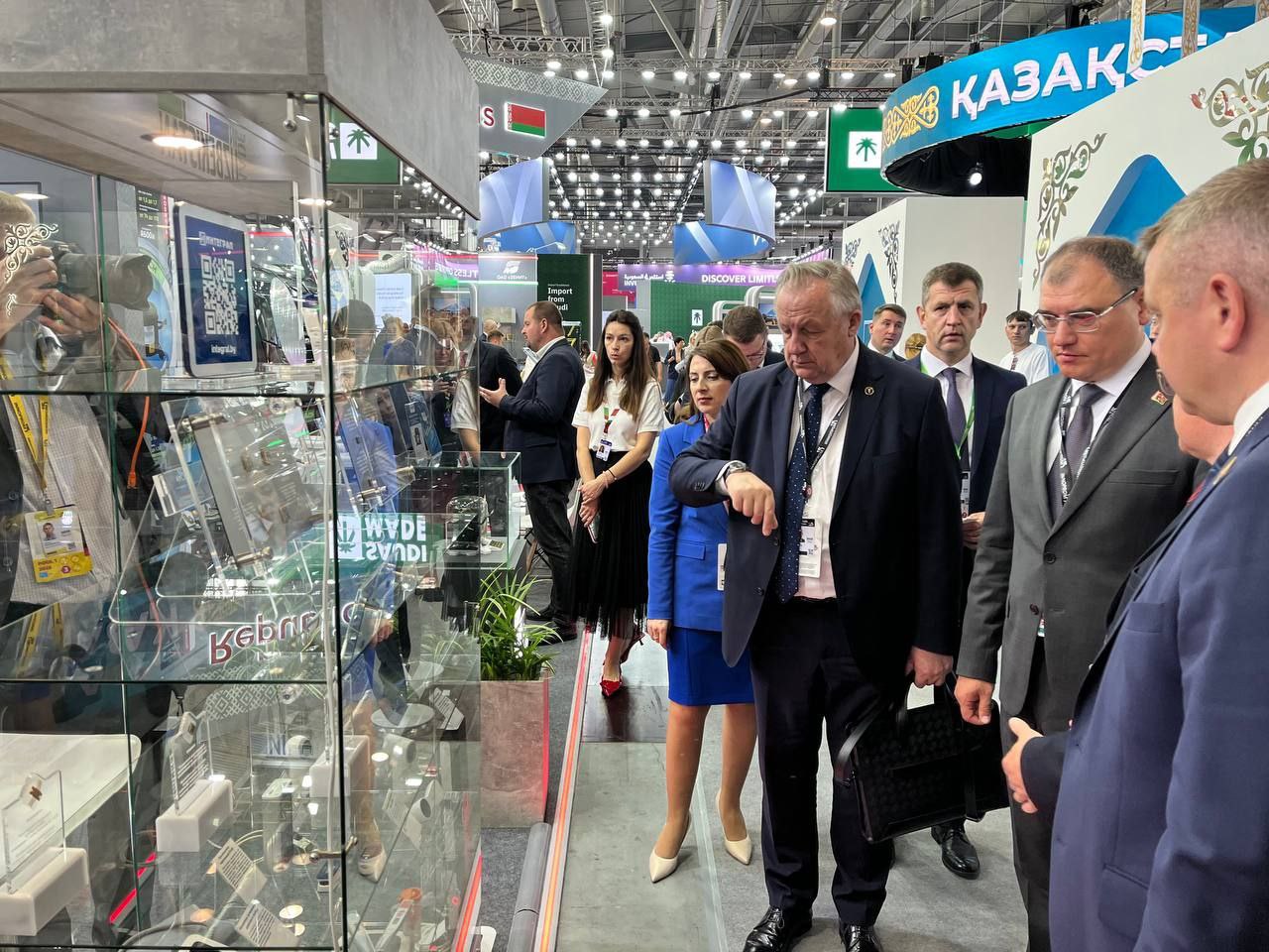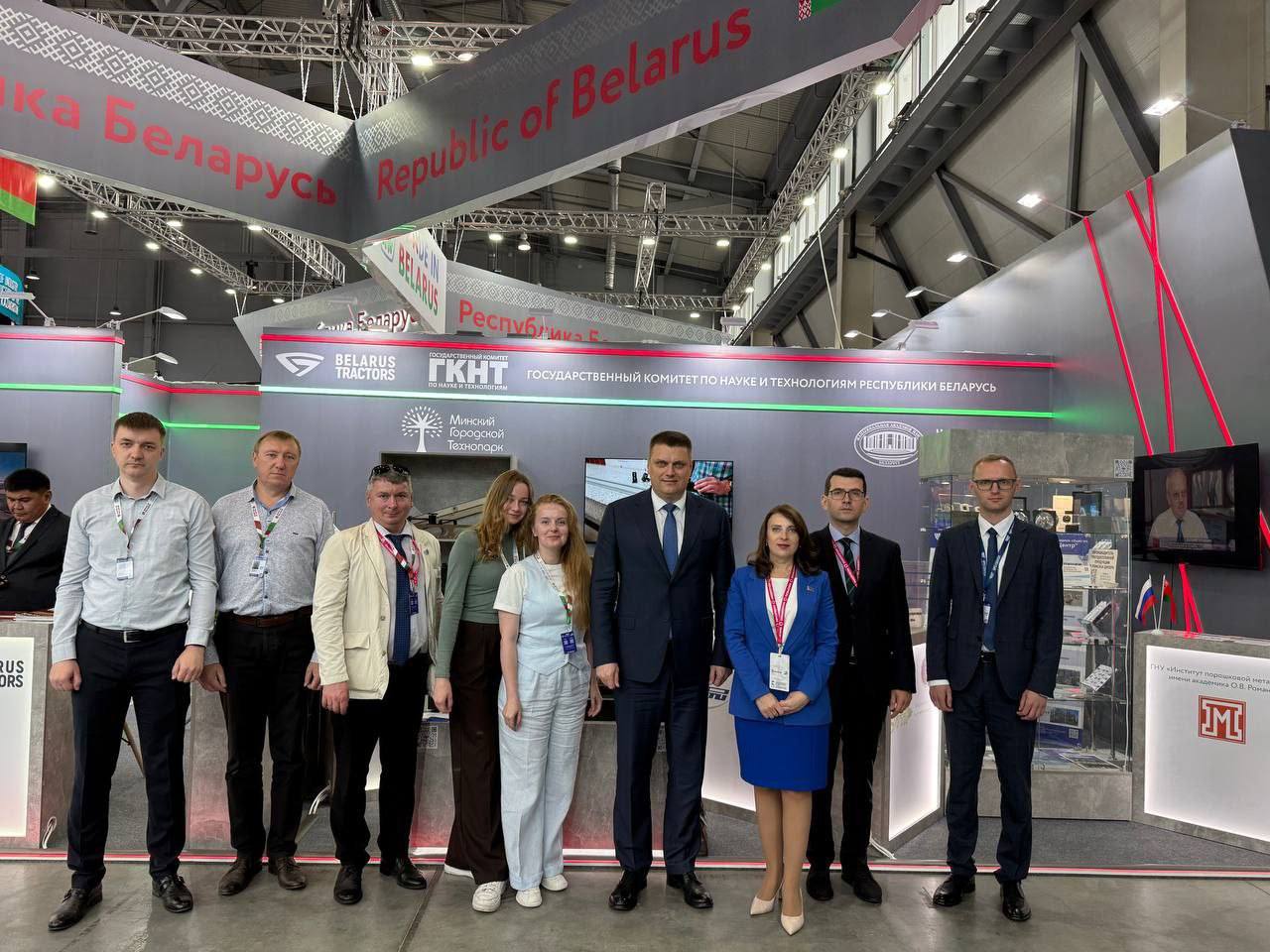 Презентация коллективного раздела научно-технических разработок в рамках Национальной экспозиции Республики Беларусь во время осмотра заместителем Премьер-министра Беларуси Виктором Каранкевичем.