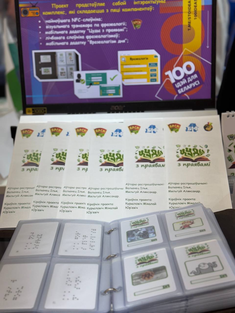 Інтэрактыўны комплекс «Цуды з праявамі» – это образовательный проект, направленный на развитие речевых компетенций пользователей, популяризацию белорусского языка в обществе, помощь людям с ограниченными возможностями в процессе изучения белорусского языка и внедрение элементов инклюзии в образовательный процесс (Белорусский инновационный фонд, проекты победителей Республиканского конкурса инновационных проектов).