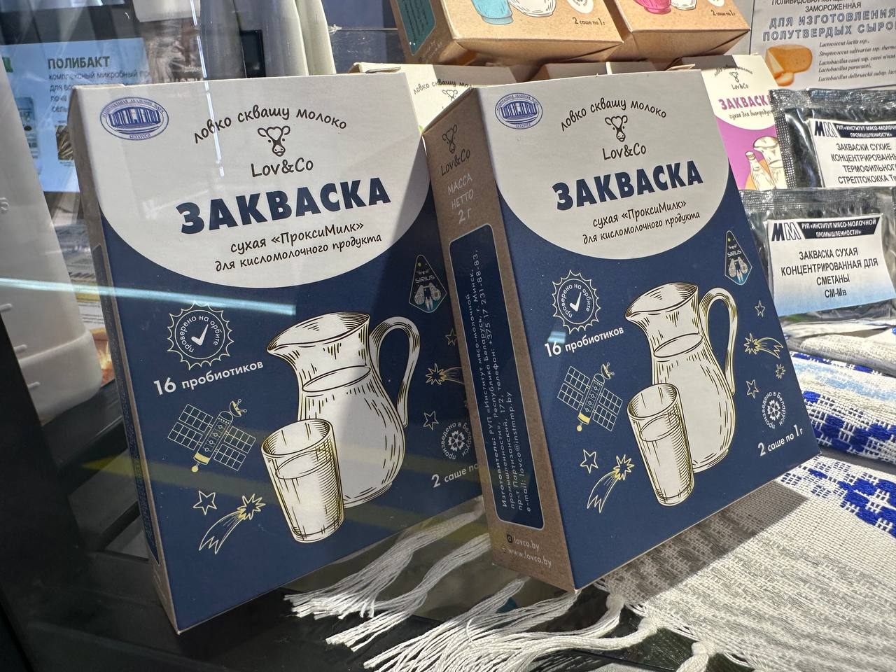 Закваски сухие пробиотических микроорганизмов «ПроксиМилк» линейки заквасок Lov&Сo применяются для приготовления кисломолочных продуктов в домашних условиях (йогурта, творога, биопродукта, биойогурта, простокваши). Для каждого вида закваски подобран уникальный состав заквасочных культур из республиканской коллекции штаммов, признанной национальным достоянием Республики Беларусь.
