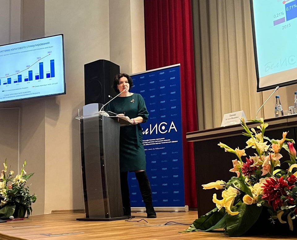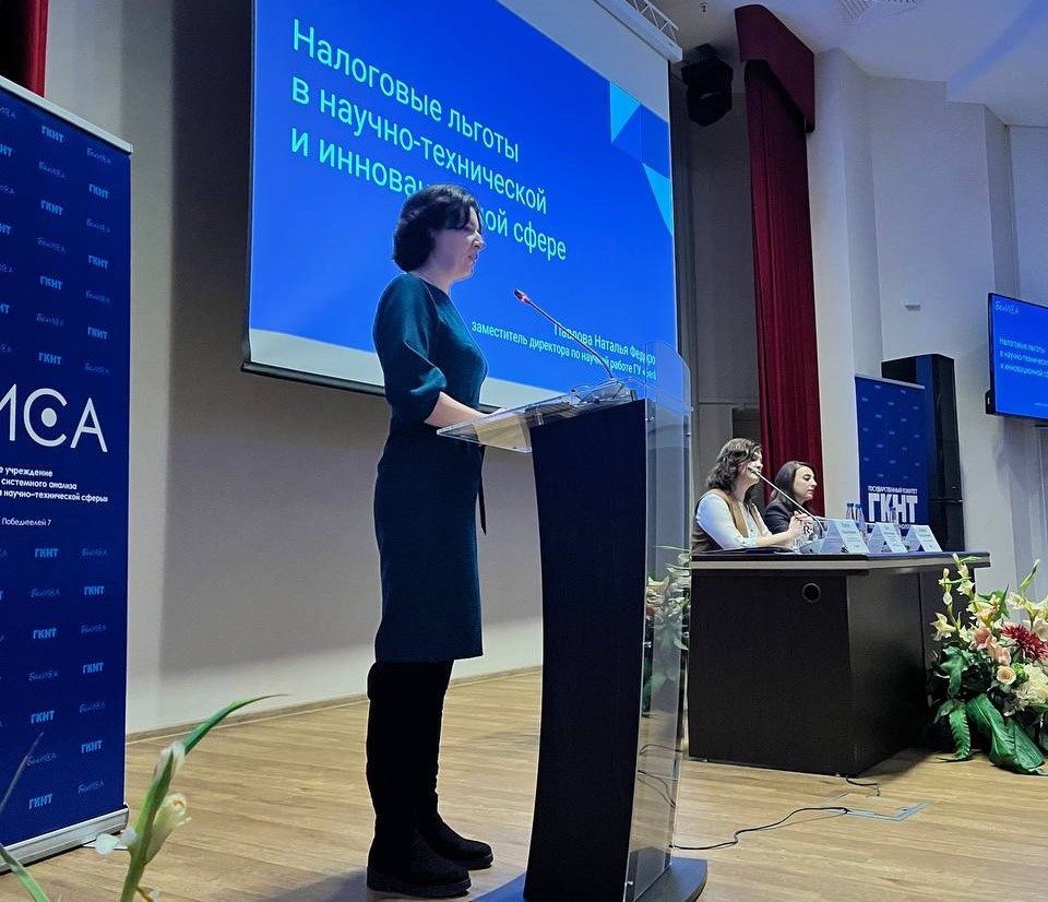C докладом о налоговых льготах в научно-технической и инновационной сфере выступила Павлова Наталья Федоровна, заместитель директора по научной работе ГУ «БелИСА». Также с докладом «Отнесение расходов на выполнение НИОК(Т)Р в состав затрат при исчислении налога на прибыль с применением повышающего коэффициента. Обзор планируемых налоговых изменений по налогу на прибыль в 2023 году» выступила Девго Виктория Александровна, начальник отдела прямого налогообложения управления информационно-разъяснительной работы Инспекции Министерства по налогам и сборам по г. Минску.