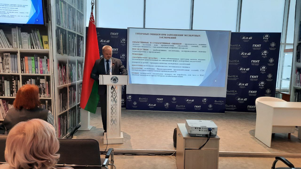 Государственным учреждением «Белорусский институт системного анализа и информационного обеспечения научно-технической сферы» (далее - ГУ «БелИСА»), являющимся национальным оператором государственной научной и государственной научно-технической экспертиз, проведен семинар с представителями государственных экспертных советов и экспертами с целью повышения качества государственной научной и государственной научно-технической экспертиз.