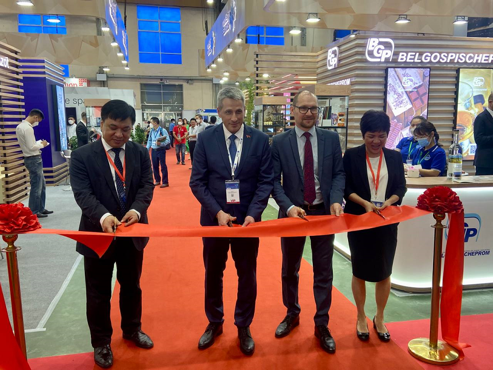 На церемонии открытия Национальной экспозиции Республики Беларусь присутствовали Чрезвычайный и Полномочный Посол Республики Беларусь в Социалистической Республике Вьетнам Владимир Владимирович Боровиков, руководители Вьетнамского агентства содействия торговле и компании Vinexad.