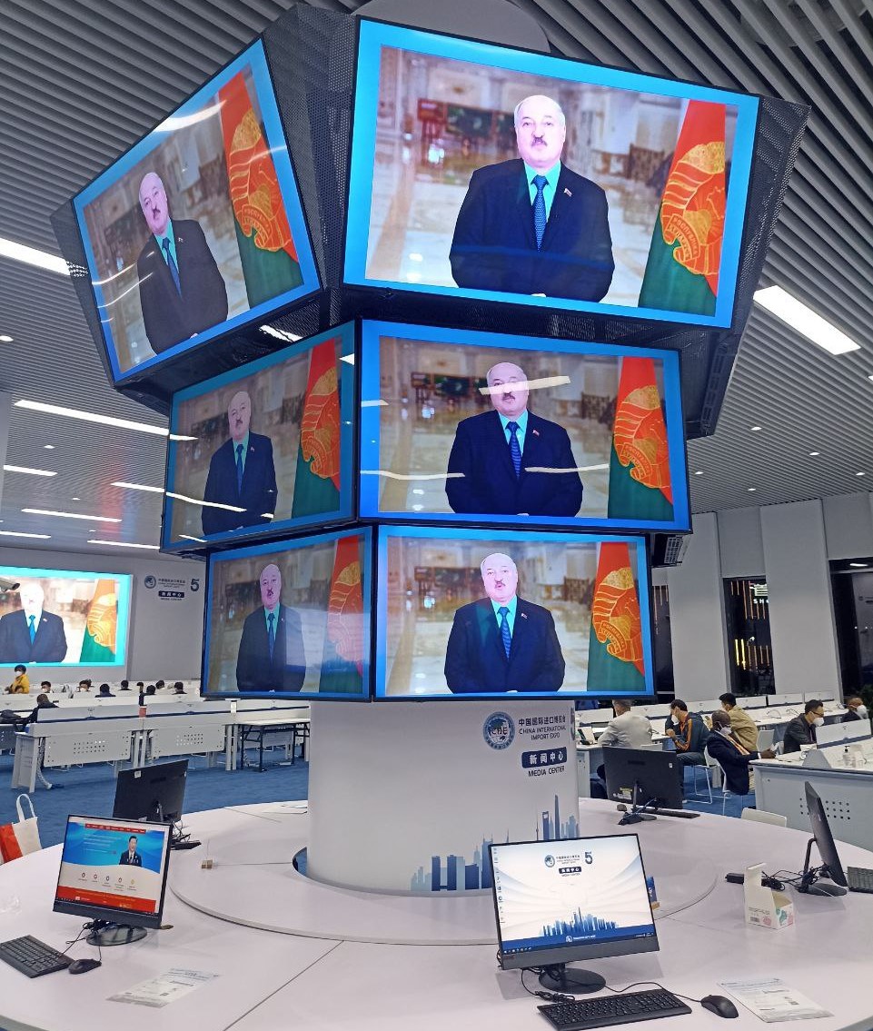 С приветственным словом к участникам церемонии по видеосвязи обратился Президент Республики Беларусь Александр Лукашенко, отметив особое значение мероприятия для укрепления взаимовыгодных торгово-экономических связей между странами-участницами. Он отметил: «5 ноября откроется Национальная экспозиция Беларуси. Свою продукцию и услуги представят 27 организаций пищевой промышленности, логистики, науки и образования. Белорусский павильон будет разделён на две основные экспозиции: "Продовольственная и сельскохозяйственная продукция" и "Высокотехнологичное оборудование и информационные технологии". Китайская международная выставка импорта – одно из крупнейших выставочных мероприятий в мире».