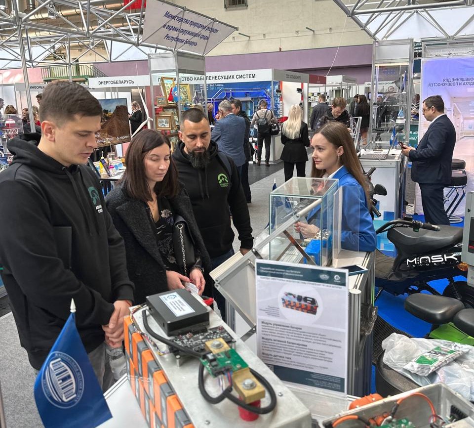 В ходе работы выставки с экспозицией коллективного раздела научно-технических разработок ознакомились Чрезвычайный и Полномочный Посол Объединенных Арабских Эмиратов в Республике Беларусь Ибрагим Салим Мохамед Аль-Мушаррах и Министр энергетики Республики Беларусь Виктор Каранкевич, которым были продемонстрированы разработки по таким направлениям как энергосберегающие технологии, измерительные приборы и автоматика, электротранспорт и зарядные устройства, экология, возобновляемые источники энергии, переработка и утилизация отходов.