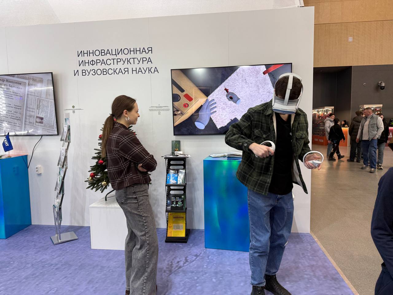 На коллективном стенде ГКНТ «Инновационная инфраструктура и вузовская наука» в рамках отраслевой экспозиции «Наука и инновации» были представлены научно-технические разработки в сфере сельского хозяйства, военного дела, информационных технологий и др. Интерактивный формат экспонатов позволил каждому почувствовать себя водителем трактора, оператором беспилотного летательного аппарата и специалистом по сборке электрощитового оборудования.