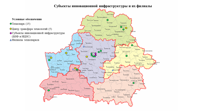 На 13 октября 2025 г. в Республике Беларусь функционирует 22 субъекта инновационной инфраструктуры, в число которых входят: