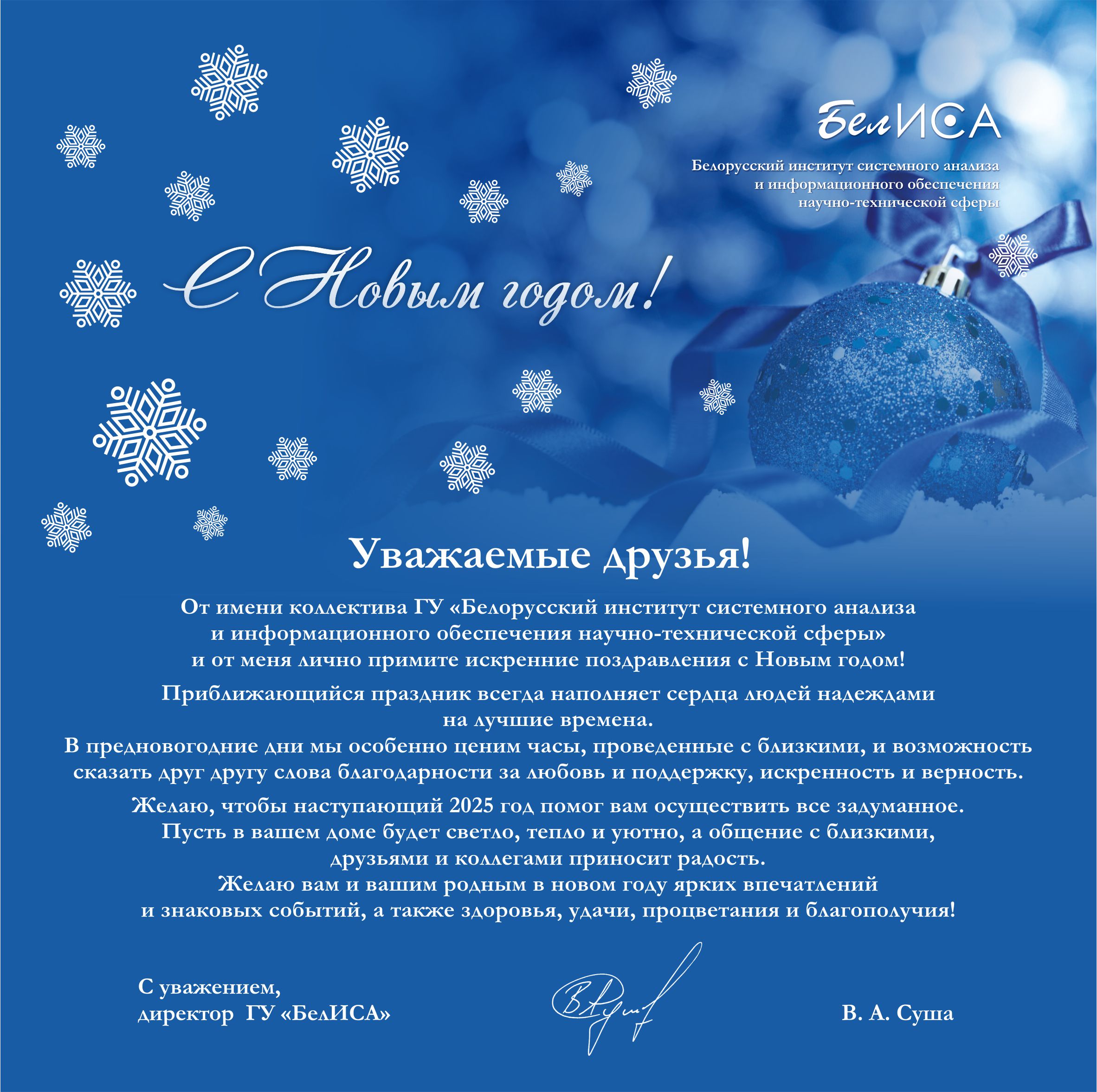 Поздравление директора ГУ «БелИСА» с Новым годом
