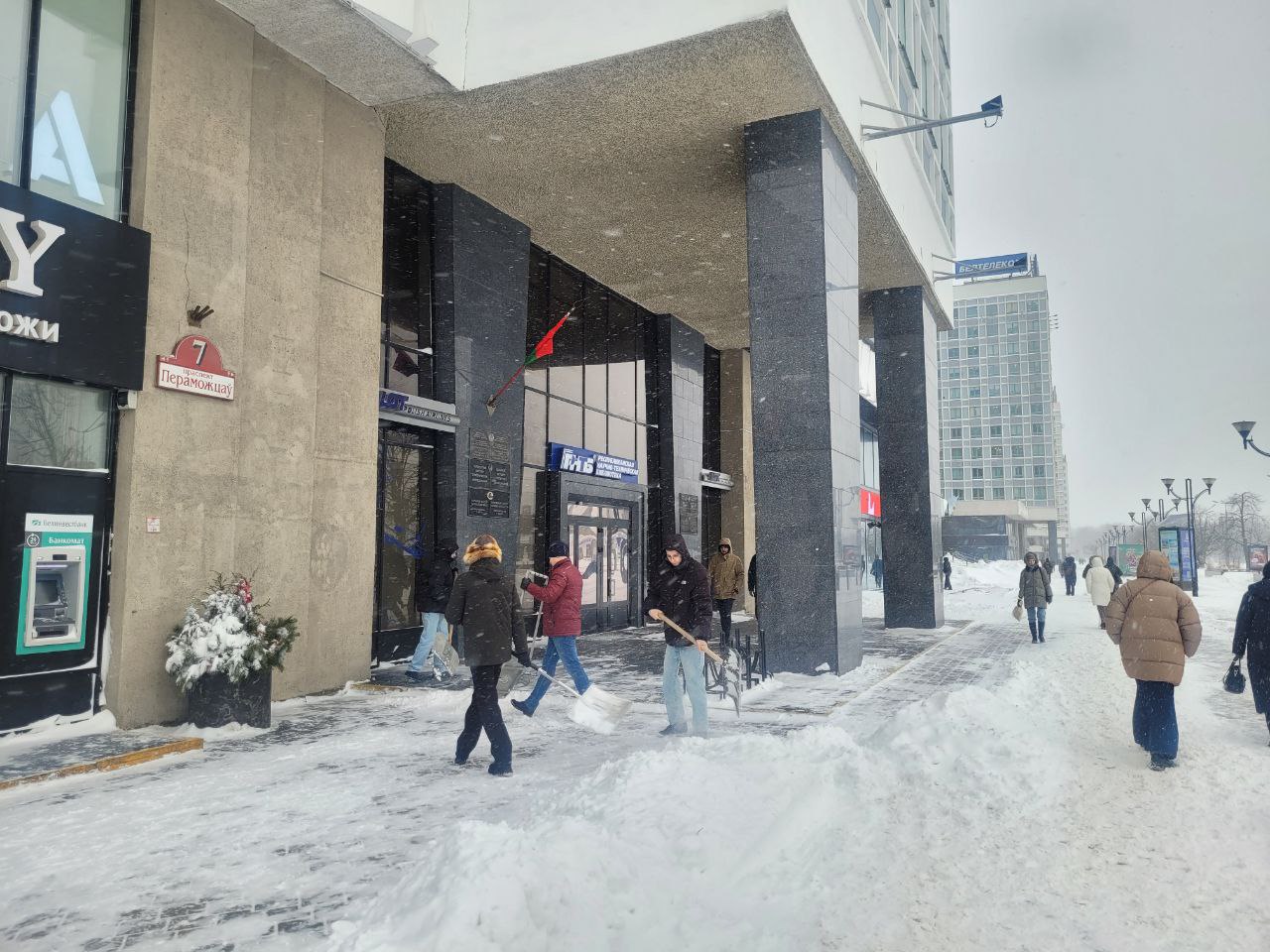 Сотрудники ГУ «БелИСА» внесли свой вклад в борьбу со снежной стихией, оказав помощь коммунальным службам города Минска. Объединив усилия, чтобы справиться со снегопадом, сотрудники дружно вышли на расчистку территории, прилегающей к зданию института. Именно в такие моменты видна настоящая команда.